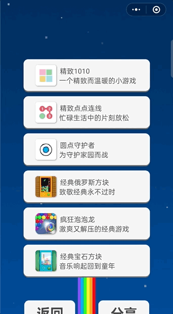 上方是这位学员的其中几个小游戏,随便从哪个进去,然后去感受一下他的小游戏矩阵吧!