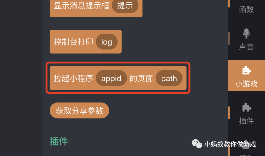 在小游戏之间进行跳转是一件非常容易的事儿,如果你使用的是微信小游戏制作工具,只需要使用下方的一个积木块即可实现小游戏间的跳转功能。