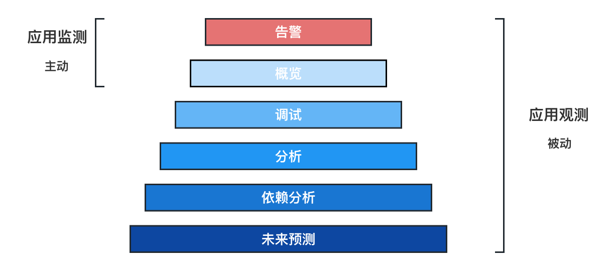 而应用观测则采用更底层的方式,即开发人员通过调试代码的方式从而了解程序的内部状态。因此,应用观测是为了帮助监控应用程序的未知问题的最新发展。