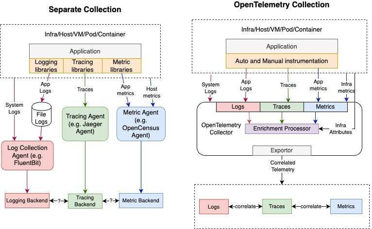 OpenTelemetry旨在创建一个收集可观测性数据的标准格式。在OpenTelemetry规范被提出前,跨不同应用程序收集遥测数据的规范是不一致的。这对于开发人员来说是一个相当大的负担。OpenTelemetry提供了一个与供应商无关的API以及库为可观测监控提供了一个标准。它能为公司节省下本来用于建立收集遥测数据机制而花费的大量宝贵时间。