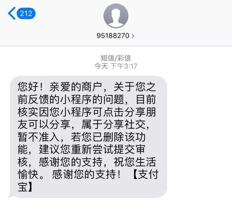 经过一番说明,他说记录下问题,反馈给审核,还让我提供了新的截图, 小伙子的态度很好,我也就接受了,我要求明确告知哪里不合适(小程序总共就4个页面)。