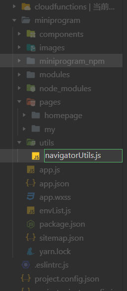 2)在utils文件夹中新建JavaScript文件,命名为navigateUtils.js