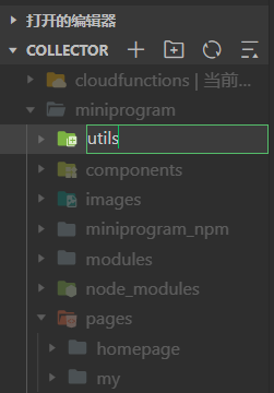 1)在miniprogram目录内直接新建一个文件夹,命名为utils(工具类)