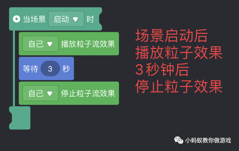 “播放粒子流效果”这块积木使用后,粒子会不停的重复播放,直到使用“停止粒子流效果”后才会停止。