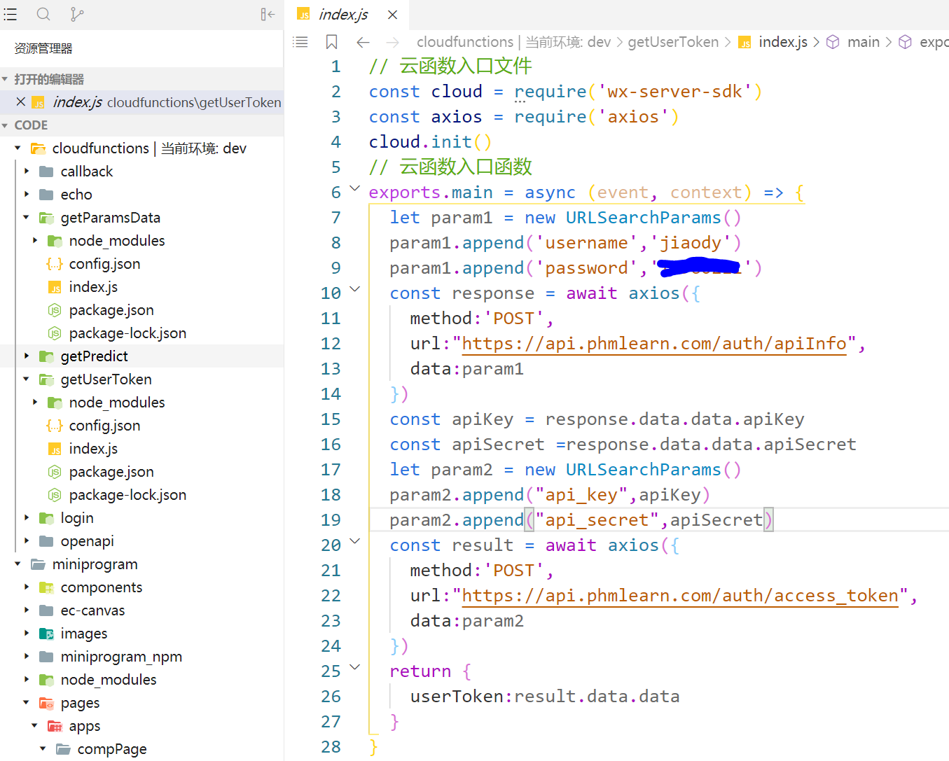 以下是在本项目中的云开发结构图和部分云函数截图: