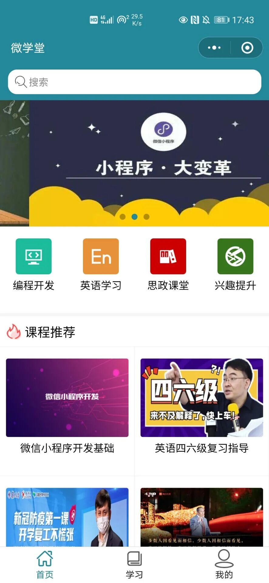 注:小程序中使用到的课程视频来自网络,仅仅做测试使用,没有用于商业用途.