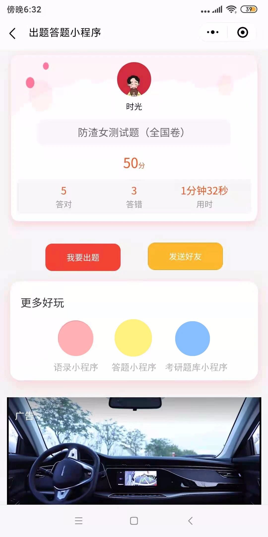 新做了一款答题小程序,界面经过精心设计,功能比较多,可以出题答题考试,并且拥有好友默契出题答题等功能。
