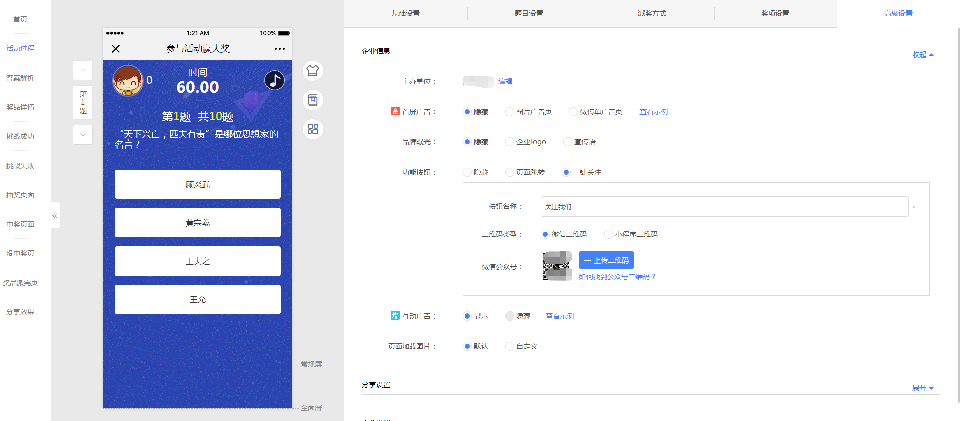 完成以上步骤,答题小游戏就基本上完成了,保存后就可以发布答题活动。
