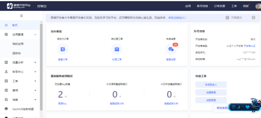 创建应用---生成秘钥key,生产环境建议用企业开发者申请;
