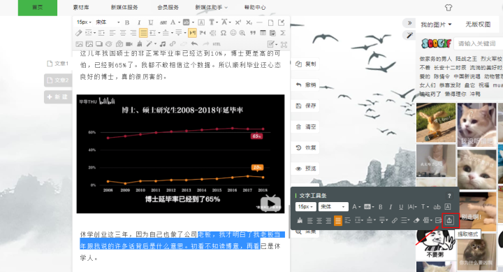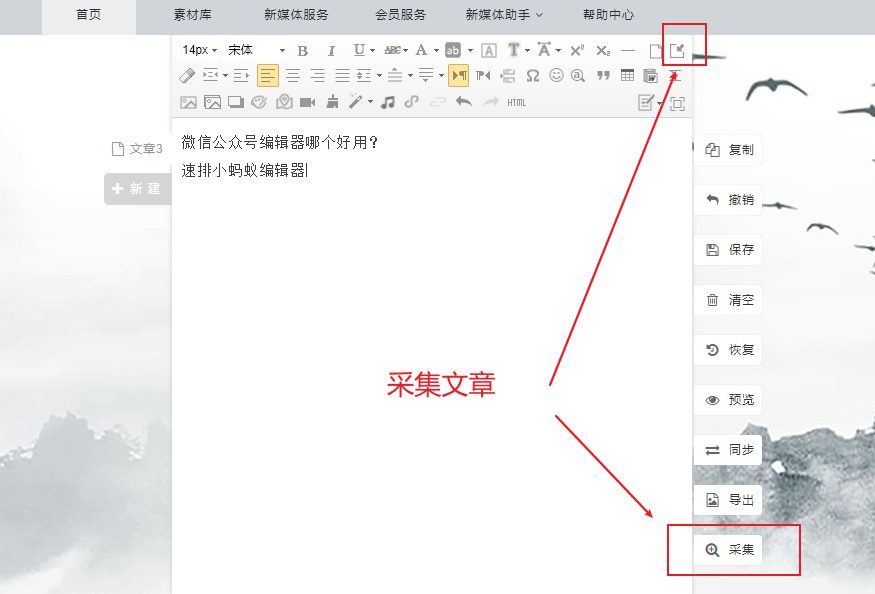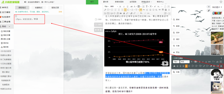 4、然后采集的文章就会出现在编辑区域,注意,这步操作是连同排版格式一起采集下来了哦~~