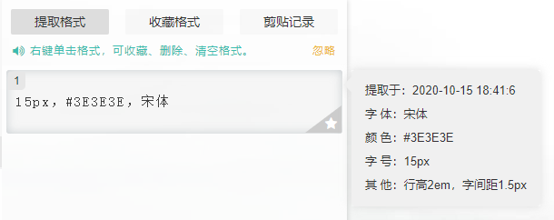 7、点击提取格式之后,就会直接在页面左侧显示提取的字体、字号以及字体颜色等相关信息;