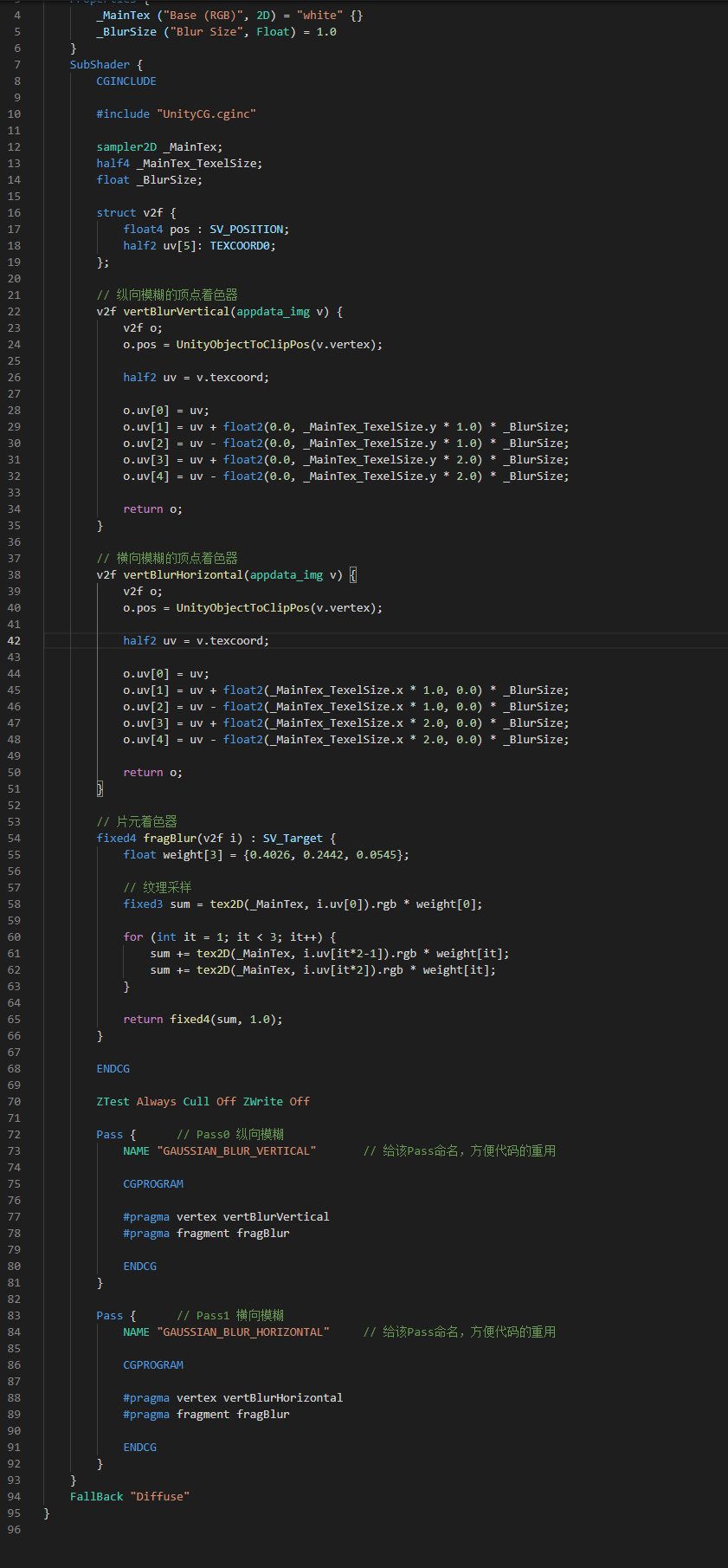 NAME "GAUSSIAN_BLUR_VERTICAL" // 给该Pass命名,方便代码的重用