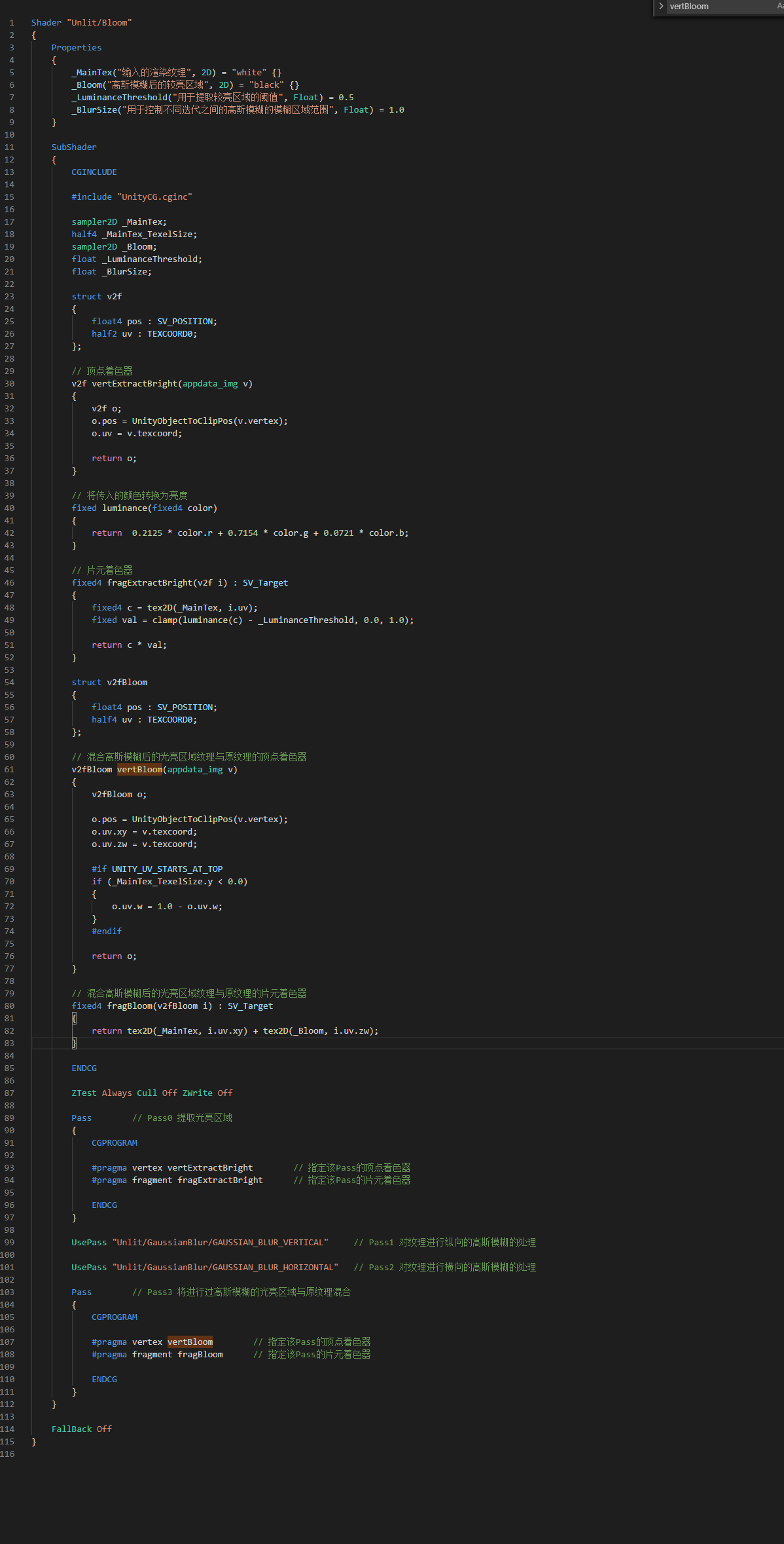 #pragma vertex vertBloom // 指定该Pass的顶点着色器