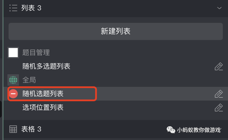 首先,创建一个“随机选题列表”,这个列表用于存放随机抽取的题目编号。之后答题的时候,我们从这个列表中挨个取出题目编号,显示对应的题目即可。