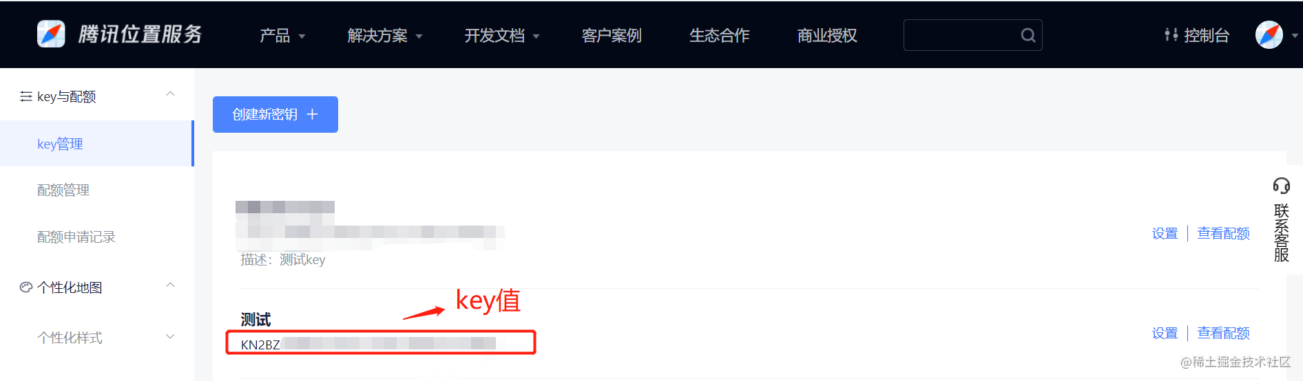 key获取地址:https://lbs.qq.com/dev/console/key/manage