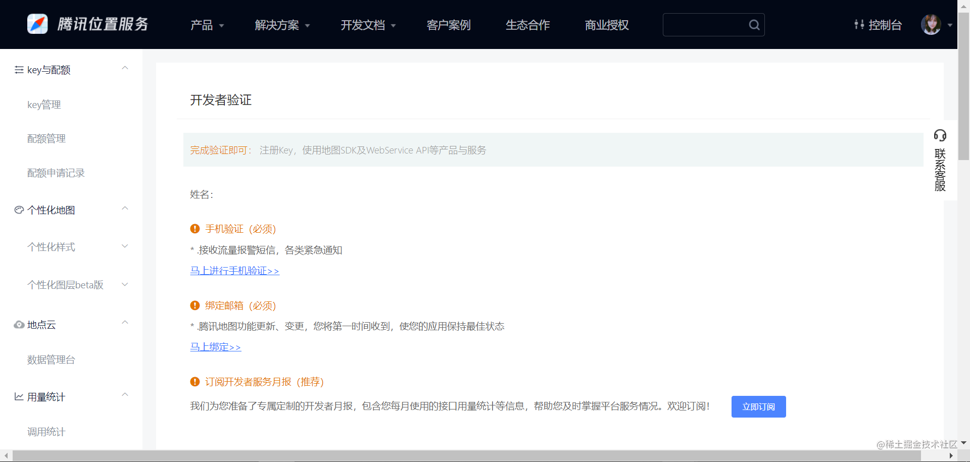 验证地址:https://lbs.qq.com/dev/console/user/info