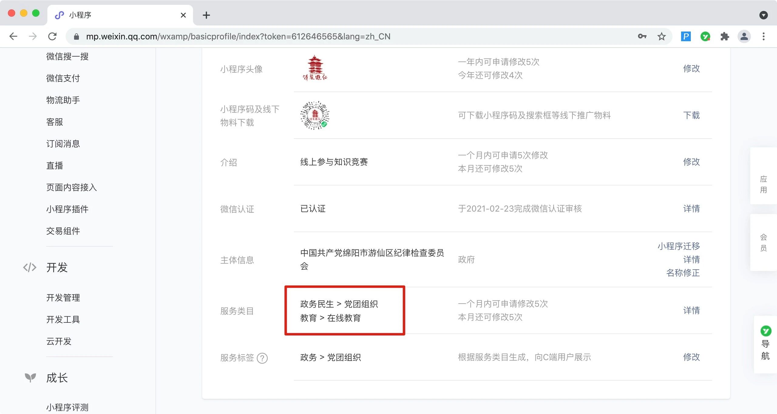 在最近几次的送审中出现一个情况就是凡是涉及到党史答题的小程序都不允许主体小程序发布 了,官方给出的理由是党史知识学习等服务,由于需要补充类目