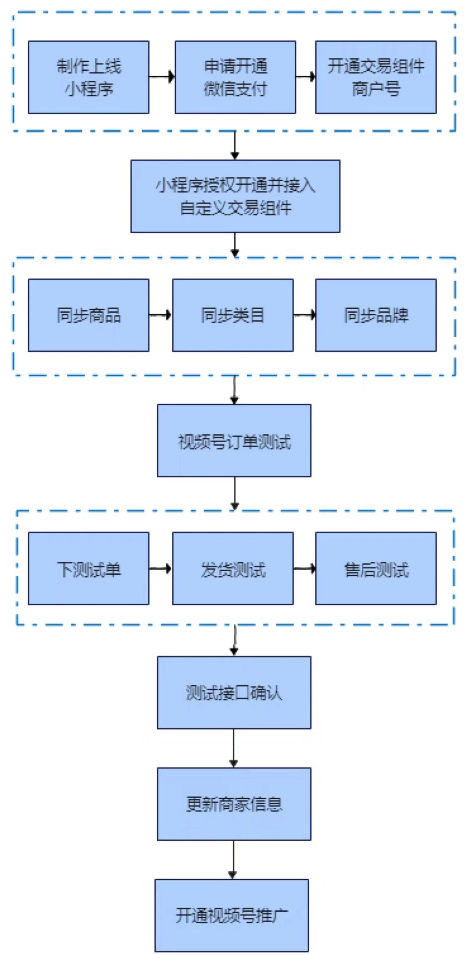 目前支持木鱼小铺专业版及以上版本小程序免费使用,可以联系我们的客服协助开通,小木整理了开通总流程图,供大家参考: