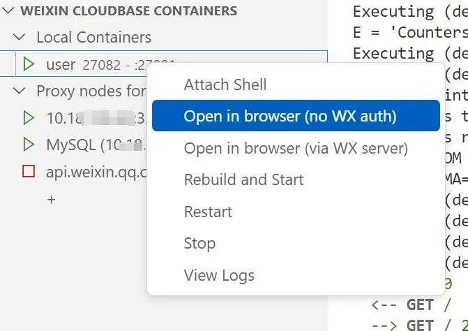 这时,就可以容器右键,浏览器中打开,no wx auth