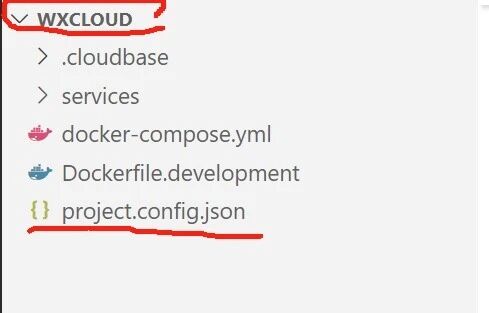 我这里顶层目录wxcloud, 同层添加项目配置文件,里面指定当前需要运行的调试项目;services 目录里可以有多个服务项目文件夹!
