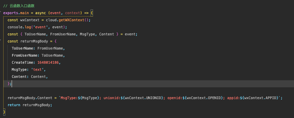 console.log(wxContext)//获取公众号用户的openid和unionid。