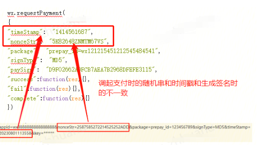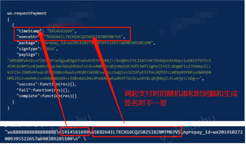 步骤二、调起支付时构造签名串的字段和格式不正确