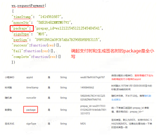 步骤三、调起支付时的大小写不正确