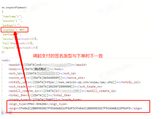 检查调起支付的签名类型是否与下单一致,比如下单是HMAC-SHA256,而调起支付用的是MD5
