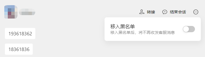针对来自用户的骚扰,平台推出黑名单,客服可拉黑用户,拉黑后不会收到用户咨询的消息。同时,在设置内可对被拉黑的用户进行管理。
