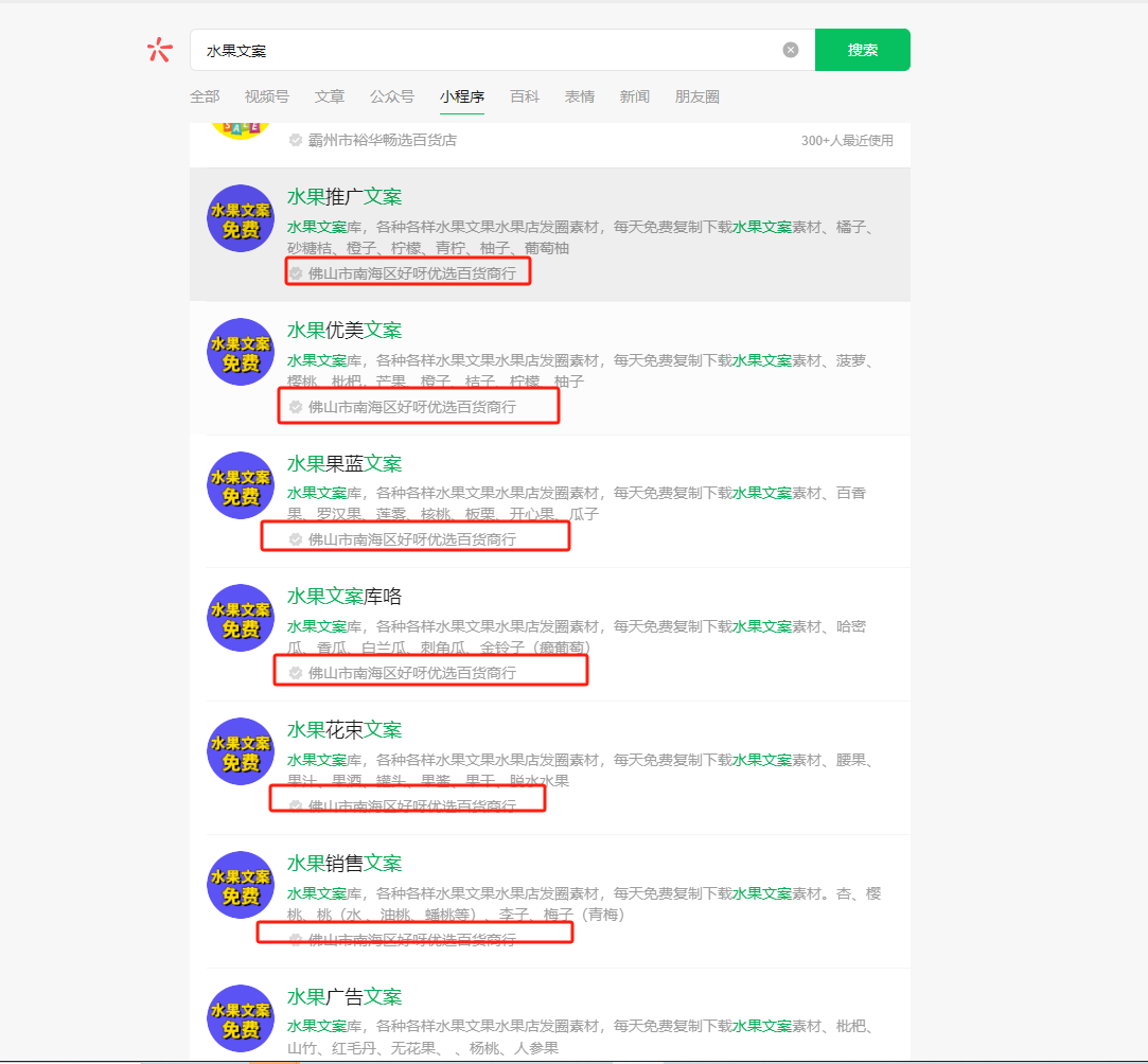 主体“佛山市南海区好呀优选百货商行”注册了36个页面、内容、功能相同或同质化严重的微信小程序,给用户造成混淆,影响用户体验,使微信小程序的账号资源得以不合理使用。