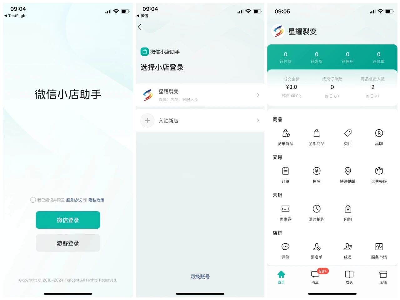 2⃣️ 灵活便捷管理小店:支持在移动端进行商品、交易、营销及店铺管理