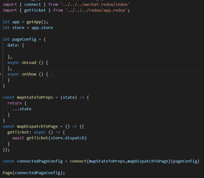 3) 使用connect将上述定义添加到pageConfig中