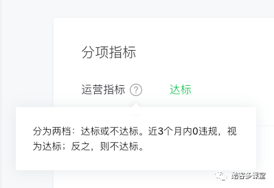 对于运营指标,只有达标或不达标两种情况,由此可以判定,运营指标权重较小。只要商家活动不违规,不存在过度诱导行为即可。需要注意的是,如90天内被投诉或违规,即不达标。值得一提的是,最近腾讯官方公众号也因违规被微信官方处罚,由此可见微信对运营的严格程度。