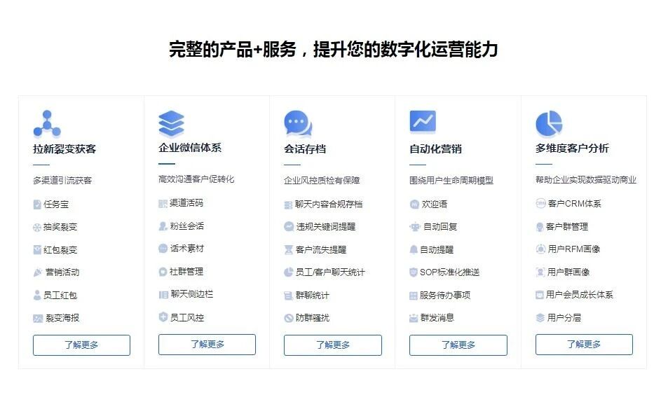 快鲸SCRM涵盖:营销裂变引流,客户CRM系统,电商零售板块,内部风控版块,公众号,小程序,短信大数据,外呼等等功能,在运营方面,我们也提供产品规划,产品搭建,策划搭建内容等,提供本地化部署方案,源码合作方式。安全,稳定。产品有等保AAA,数据存储在自己的服务器,每月2-4次的产品更新,服务百余家大型集团公司!