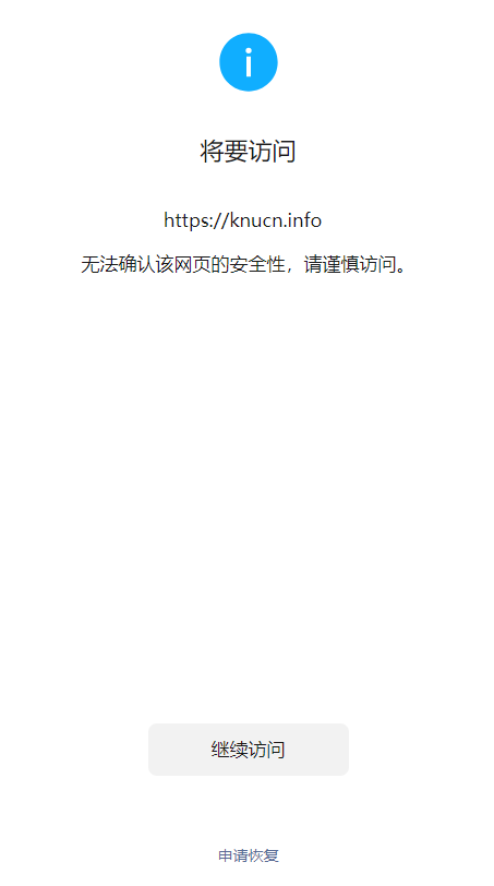 knucn.info 已在工信部备案,备案号沪ICP备20004104号-3,经https://urlsec.qq.com/complain.html检查,并无问题。但是微信浏览器访问依然有警告,请@官方人员帮助查明