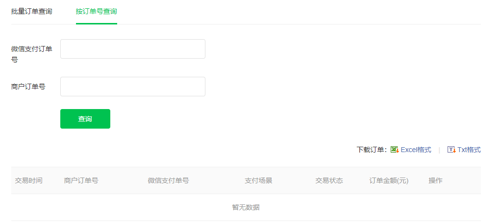 也可以直接按照微信订单号、商户订单号查询单个订单信息。