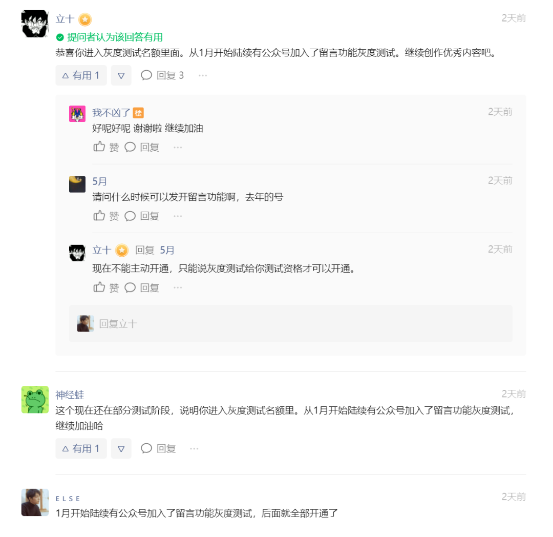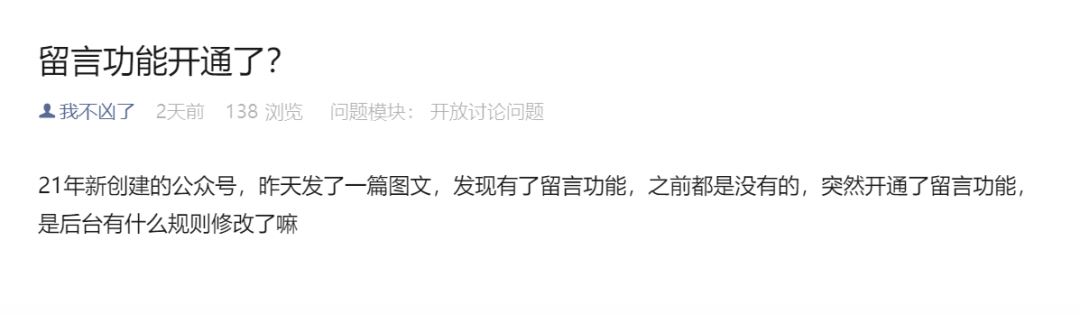 原来是从今年1月份开始,公众号在进行留言功能灰度测试,被覆盖到的号就会恢复关闭已久的留言功能了!