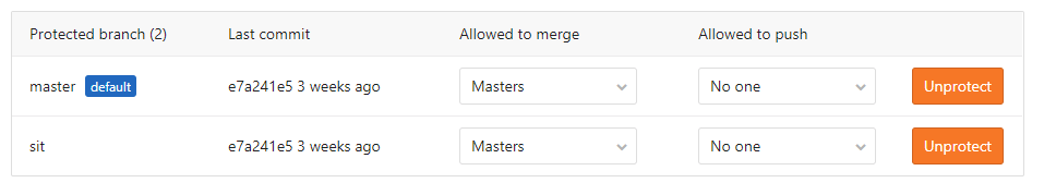 - 不允许任何人直接push到关键分支(Allowed to push: No one)