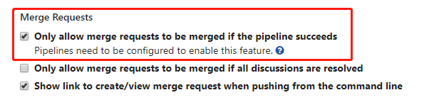 - 仅允许通过pipeline的 合并请求(merge requests) 进行合并