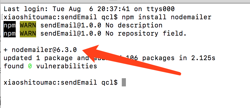 这里我们需要用npm安装一个依赖包 nodemailer 使用npm安装依赖包需要用到node,至于node的安装大家自行百度,一大堆的讲解文章。
