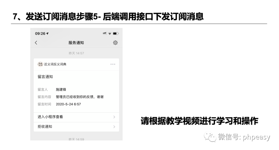 前端成功申请用户允许下发消息的权限之后,后端就可以给用户发送通知消息了。