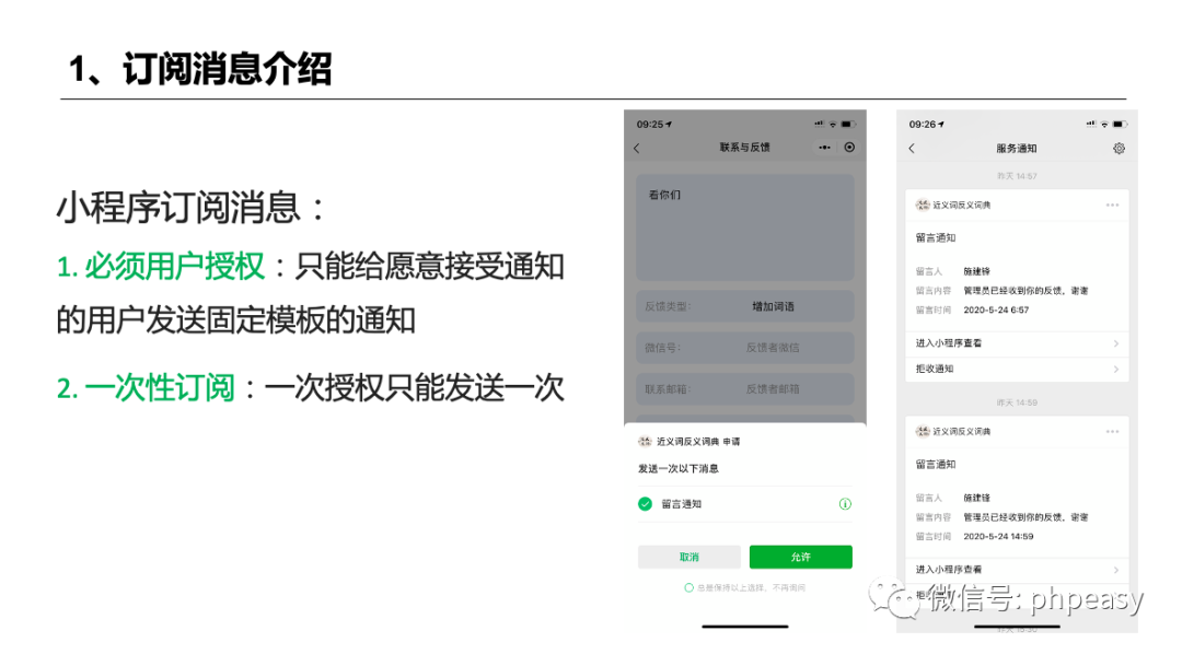 第二,一次性订阅,如最右边的图所示,一次授权只能给用户发送一次消息
