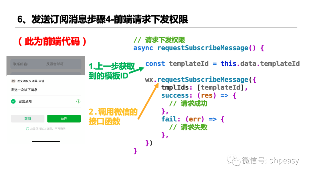 前端获取了消息模板ID之后,就可以向用户请求下发权限了。