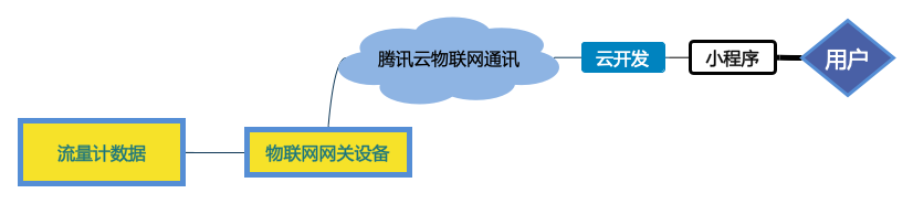 现场的电子流量计产生的数据,可以通过物联网技术传输到腾讯云物联网平台,再利用规则引擎将数据流入云开发,即可与小程序对接,实现人机界面,用于评估流量计的性能评估。