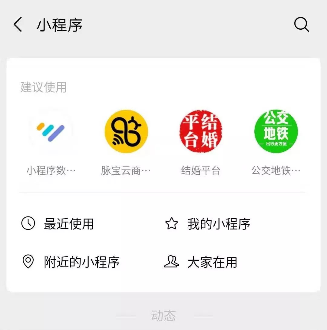 让我们把目光再次拉回整体界面,我们不难发现,此次改版后的小程序界面,已经有点公众号改版成“信息流”后的模样,那么“动态”中展示的“小程序”会不会类似公众号,也是用户主动订阅后(放到小程序身上是收藏)的消息推送。