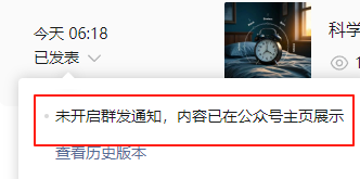 网站api推送文章到公众号成功后,文章通常不会群发通知用户,手机端只能在历史记录里看到,不会在通知栏里看到新的文章推送,请MP后台检查下图红色框住的部分,是否开启通知