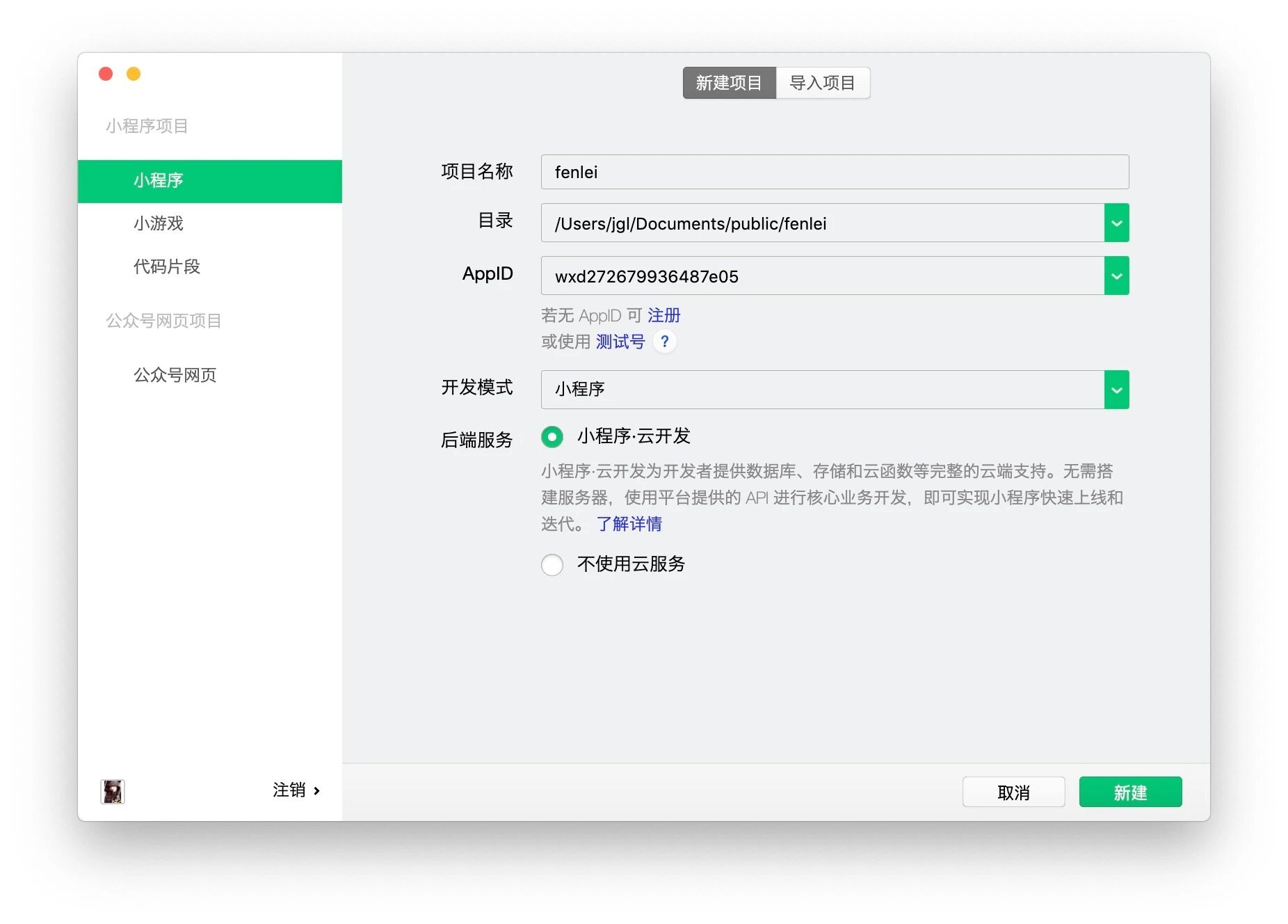 【个人笔记】初学者如何创建自己的小程序,之五,如何创建云开发项目