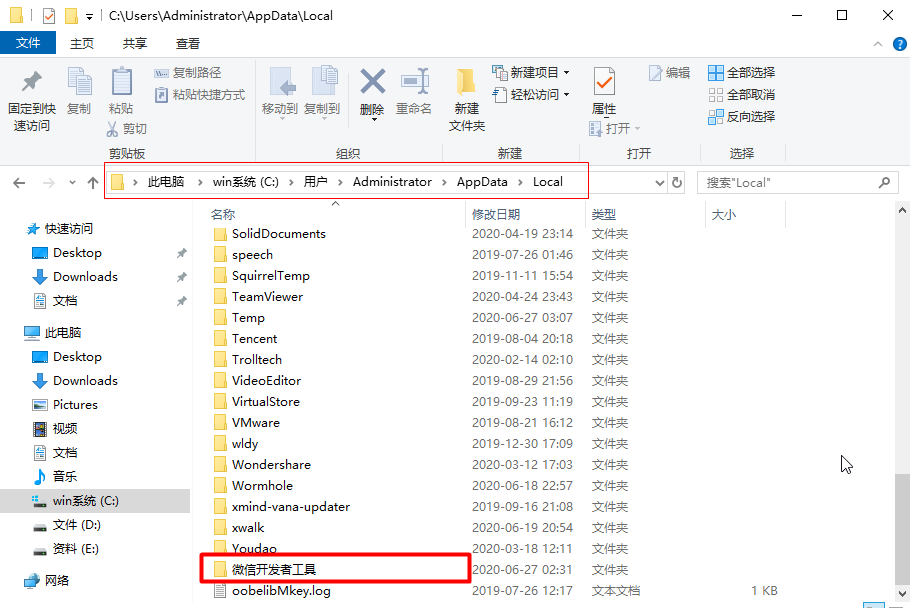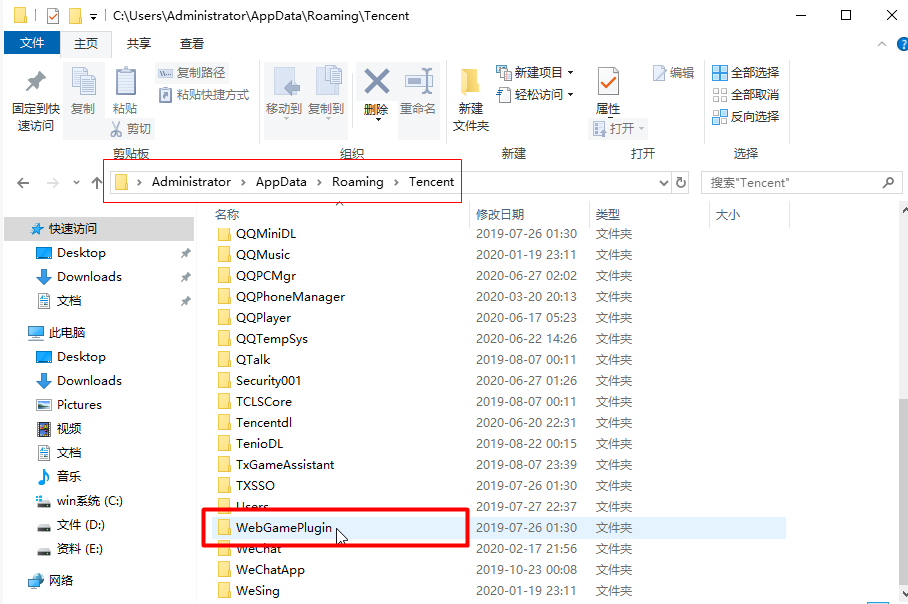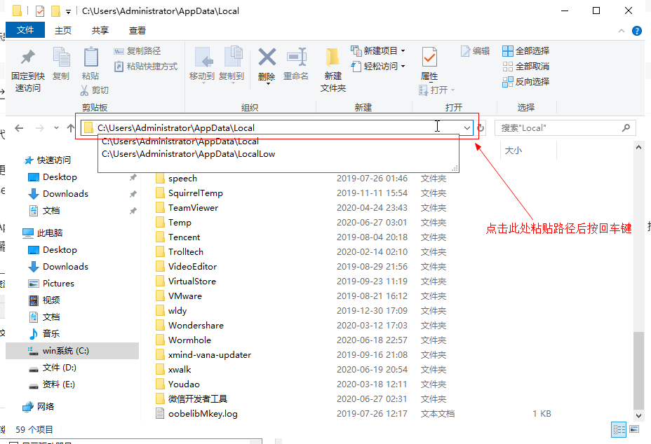 也可以复制C:\Users\Administrator\AppData\Local和C:\Users\Administrator\AppData\Roaming\Tencent粘贴到文件夹地址栏,按回车键直接到达该目录