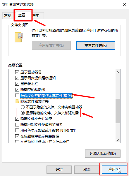 默认AppData文件夹是隐藏的,右键点击"开始 --->运行"(或Win键+R) ---> 输入control folders 打开文件资源管理选项 ---> 点击查看 ---> 把高级设置里的"隐藏受保护的操作文件系统"前面的打钩去掉和隐藏文件/文件夹下面选择"显示隐藏的文件/文件夹" ---> 点击 "应用"