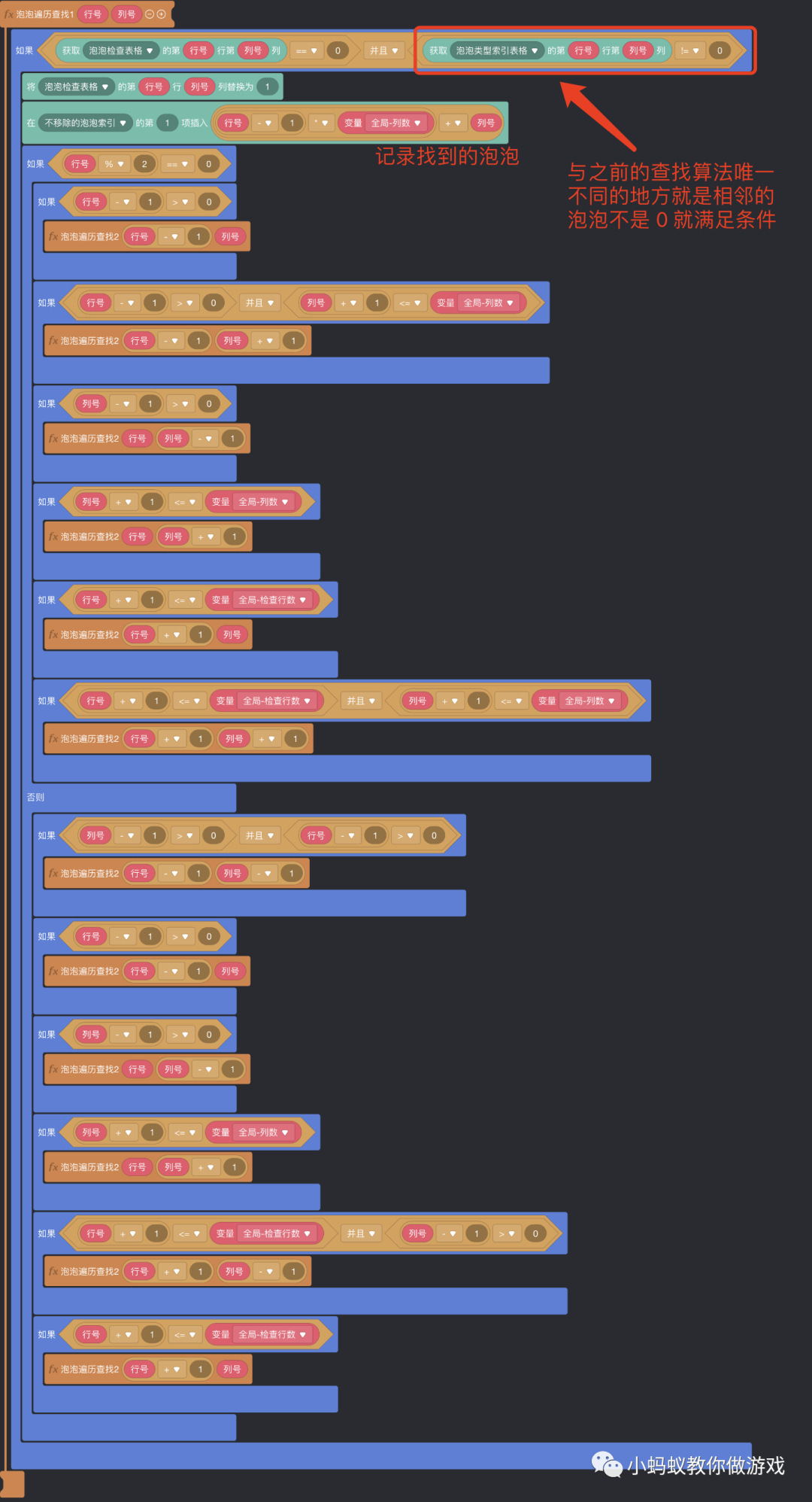 跟之前的查找算法一样,都是使用递归查找,唯一的区别是,只要相邻的泡泡不是 0 ,就满足查找条件。